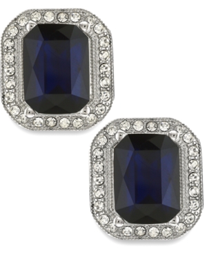 Rich colors are all you need for a romantic party look. 2028's drop earrings feature octagonal-cut stones in sapphire hues. Finished with clear crystal stones. Crafted in silver-tone mixed metal. Approximate diameter: 3/4 inch. Photo has been enlarged and enhanced.